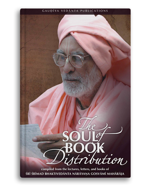 This Soul of Book Distribution contains Śrī Śrīmad Bhaktivedānta Nārāyaṇa Gosvāmī Mahārāja’s appeal, inspiration, guidance and blessings in regard to the most essential practices that nourish our bhakti, namely śravaṇa (hearing, or reading) and kīrtana (chanting, or preaching).